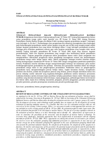 Hermawan, Puji Yuwana (2018) Tinjauan pengaturan dalam pengawasan pemanfaatan baterai nuklir. In: Prosiding seminar keselamatan nuklir tahun 2018, 2 August, Malang.