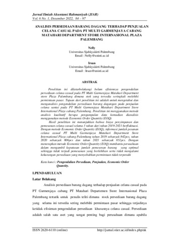 Penelitian ini dilatarbelakangi belum efisiennya pengendalian persediaan celana casual pada PT Multi Garmenjaya Matahari Department store Plaza Palembang dimana stok yang tersedia seringkali melebihi permintaan pasar. Tujuan dari penelitian ini adalah untuk mengetahui dan menganalisis pengendalian persediaan barang dagangan pada penjualan celana santai pada PT Multi Garmenjaya Matahari Department Store International Plaza cabang Palembang. Penelitian ini menggunakan metode analisis kualitatif berupa pengumpulan data kemudian dianalisis menggunakan metode Economic Order Quantity (EOQ) Hasil penelitian ini menunjukkan bahwa biaya penyimpanan dan pemesanan celana casual selama 3 tahun dari tahun 2019-2021 berfluktuasi. Dengan metode Economic Order Quantity (EOQ), informasi jumlah pesanan celana casual PT Multi Garmenjaya Matahari Department Store International Plaza cabang Palembang tahun 2019 sebanyak 842pcs, tahun 2020 sebanyak 806pcs dan tahun 2021 sebanyak 851pcs. Dengan menerapkan metode Economic Order Quantity (EOQ) membantu perusahaan dalam mengambil keputusan jumlah pemesenan barang yang optimal sehingga tidak terjadi pemesanan yang berlebihan serta tidak mengalami kekurangan persediaan yang menyebabkan permintaan tidak terpenuhi.