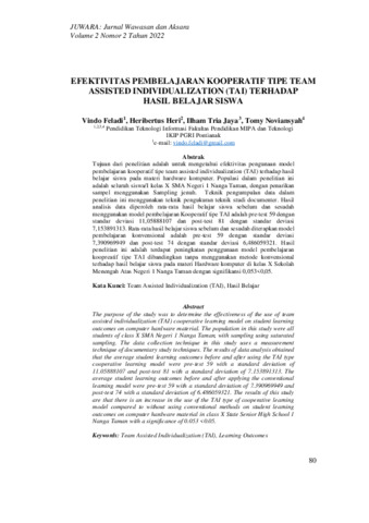 Vindo, Feladi and Heribertus, Heri and Ilham, Tria Jaya and Tomy, Noviansyah (2022) Efektivitas pembelajaran kooperatif tipe Team Assisted Individualization (TAI) terhadap hasil belajar siswa. JUWARA : Jurnal Wawasan dan Aksara, 2 (2): 1. pp. 80-93. ISSN 2797-2097