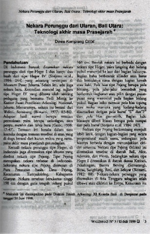 Dewa, Kompiang Gede (1999) Nekara perunggu dari Ularan, Bali Utara: teknologi akhir masa prasejarah. Walennae, II (3). pp. 1-12. ISSN 1411-0573