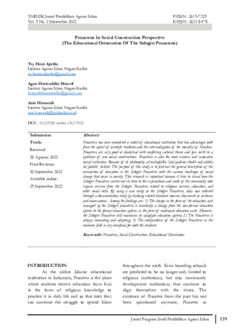 | Uncontrolled Keywords: | Pesantren, Social construction, Educational orientation, Islamic boarding school, Islamic education |