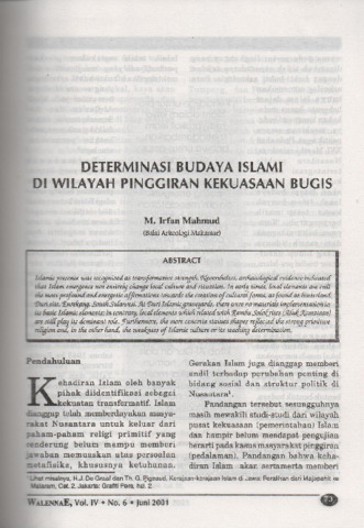 M., Irfan Mahmud (2001) Determinasi budaya islam di wilayah pinggiran kekuasaan Bugis. Walennae, IV (6). pp. 73-90. ISSN 1411-0573