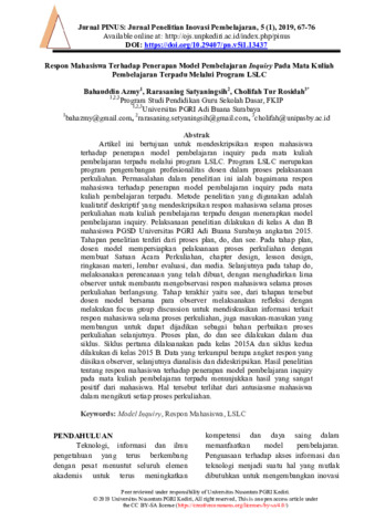 | Uncontrolled Keywords: | Model inquiry, Respon mahasiswa, LSLC, Inquiry-based learning, University students, Learning processes |
