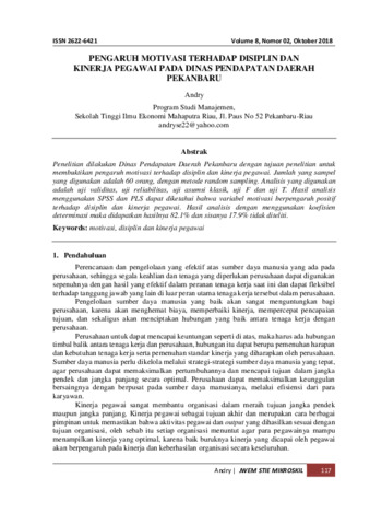 Penelitian dilakukan Dinas Pendapatan Daerah Pekanbaru dengan tujuan penelitian untuk membuktikan pengaruh motivasi terhadap disiplin dan kinerja pegawai. Jumlah yang sampel yang digunakan adalah 60 orang, dengan metode random sampling. Analisis yang digunakan adalah uji validitas, uji reliabilitas, uji asumsi klasik, uji F dan uji T. Hasil analisis menggunakan SPSS dan PLS dapat diketahui bahwa variabel motivasi berpengaruh positif terhadap disiplin dan kinerja pegawai. Hasil analisis dengan menggunakan koefisien determinasi maka didapatkan hasilnya 82.1% dan sisanya 17.9% tidak diteliti.