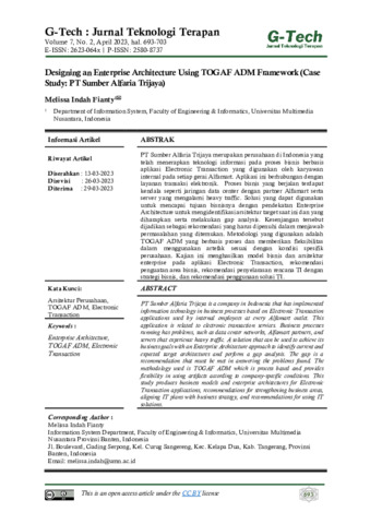 Fianty, Melissa Indah (2023) Designing an enterprise architecture using togaf adm framework (case study: PT Sumber Alfaria Trijaya). G-TECH: Jurnal Teknologi Terapan, 7 (2): 38. pp. 693-703. ISSN 2580-8737