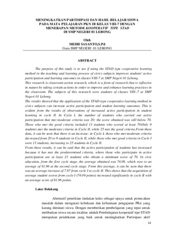 The purpose of this study is to see if using the STAD type cooperative learning method in the teaching and learning process of civics subjects improves students' active participation and learning outcomes in classes VIII-7 at SMP Negeri 01 Lebong. This research is classroom action research, which is a form of research that is reflective in nature by taking certain actions in order to improve and enhance learning practices in the classroom. The subjects of this research were students of classes VIII–7 at SMP Negeri 01 Lebong. The results showed that the application of the STAD-type cooperative learning method in civics subjects can increase active participation and student learning outcomes. This is evident from the results of observations of increased active participation in student learning in cycle II. In Cycle I, the number of students who carried out active participation that met moderate criteria was 20; the score obtained was still below 70. Those who met the good criteria included 13 students who scored at least 70. Only 9 students met the moderate criteria in Cycle II, while 25 met the good criteria.From these data, it can be seen that there is an increase: in Cycle I, those who met moderate criteria decreased from 20 to 9 students in Cycle II, while those who met good criteria in Cycle I were 13 students, increasing to 25 students in Cycle II. From these results, it can be said that the active participation of students has increased because it has met the predetermined criteria, where those who participate in active participation are at least 23 students who obtain a minimum score of 70. In civic education, from the first cycle stage, the average obtained was 74.09, which rose to an average of 81.96 at the second cycle stage. From this average, it can be seen that there was an average increase of 7.87 from cycle I to cycle II. This shows that the acquisition of average student scores from cycle I (74.09 points) increased significantly in cycle II with an average score of 81.96 points.
