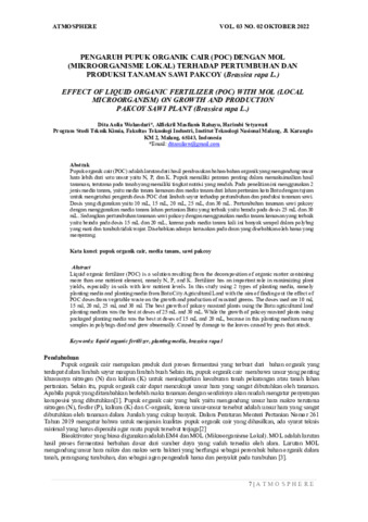 Dita, Aulia Wulandari and Alfickril, Masfianis Rahayu and Harimb, Setyawati (2022) Pengaruh Pupuk Organik Cair (POC) dengan MOL (Mikroorganisme lokal) terhadap pertumbuhan dan produksi tanaman sawi pakcoy (Brassica rapa L.). Jurnal Atmosphere, 3 (2): 2. pp. 7-17. ISSN 2747-2272