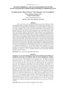 Pada saat ini energi listrik merupakan kebutuhan yang penting di Indonesia. Akibat pertumbuhan penduduk yang tinggi, kebutuhan listrik rakyat Indonesia akan bertambah 7 – 9% setiap tahunnya. Pada tahun 2010 rasio elektrifikasi secara nasional adalah 65% sedangkan di Jawa Barat mencapai 69,9%. Energi listrik tidak hanya digunakan untuk penerangan tetapi juga untuk menjalankan aktivitas mata pencaharian. Tidak hanya daerah perkotaan, tetapi masyarakat pedesaan yang tinggal di daerah pegunungan juga membutuhkan energi listrik. Wilayah pegunungan biasanya mempunyai kemiringan lereng yang terjal dengan sungai- sungai yang mengalir sepanjang waktu. Kondisi tersebut berpotensi untuk dikembangkannya pembangkit listrik mikrohidro (PLTHM). Tujuan penelitian ini adalah mengidentifikasi potensi sumberdaya air DAS Cisadane Hulu untuk pengembangan pembangkit listrik tenaga mikro hidro. Penelitian ini mengunakan aplikasi hidrologi model Soil and Water Assesment Tools (SWAT) yang mengkalkulasi hujan sebagai input dan diproses pada sistem DAS yang kemudian output model berupa debit, loading sediment dan kualitas air. Dengan model hidrologi yang tervalidasi didapat luaran debit yang kemudian dianalisis untuk mencari debit andalan 80%. Hasil simulasi model dan analisis debit andalan menunjukan DAS Cisadane Hulu mempunyai banyak potensi energi listrik yang dibangkitkan dengan PLTMH, dua SubDAS klasifikasi PLTA skala kecil, yaitu; SubDAS di Desa Cisarua dengan debit andalan 5,63 m3/detik dan beda tinggi 67 m berpotensi menghasilkan 3.511 kW, kebutuhan volume reservoir sebanyak 22,8 x 106 m3 dan SubDAS di Desa Bantarkaret dengan debit andalan 3,85 m3/detik dan beda tinggi mencapai 39 m berpotensi menghasilkan energi listrik sebesar 1.398,6 kW dengan kebutuhan tampungan air sebesar 9,3 x 106 m3. Sedangkan SubDAS lainnya masuk dalam klasifikasi minihidro (100 kW – 1000 kW).