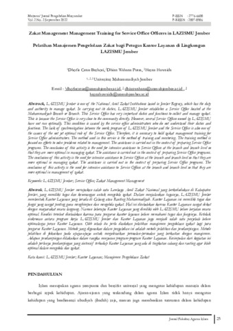| Uncontrolled Keywords: | Jember, Kantor layanan, Manajemen pengelolaan zakat, Zakat, Management training, LAZISMU |