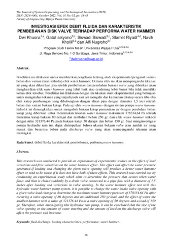 Dwi, Khusna and Gatot, Setyono and Siswadi, Siswadi and Slamet, Riyadi and Navik, Kholili and Alfi, Nugroho (2022) Investigasi efek debit fluida dan karakteristik pembebanan disk valve terhadap performa water hammer. The Journal of System Engineering and Technological Innovation, 1 (2): 1. pp. 38-43. ISSN 2828-4003