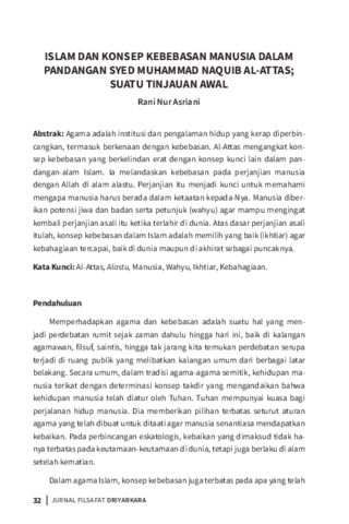 Rani, Nur Asriani (2022) Islam dan konsep kebebasan manusai dalam pandangan Syed Muhammad Naquib Al-Attas: Suatu tinjauan awal. Driyarkara Jurnal Filsafat, 42 (2): 2. pp. 32-44. ISSN 2809-9516