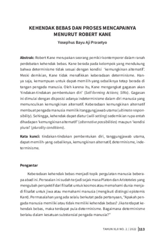 Yosephus, Bayu Aji Prasetyo (2022) Kehendak bebas dan proses mencapainya menurut Robert Kane. Driyarkara Jurnal Filsafat, 24 (2): 7. pp. 113-124. ISSN 2809-9516