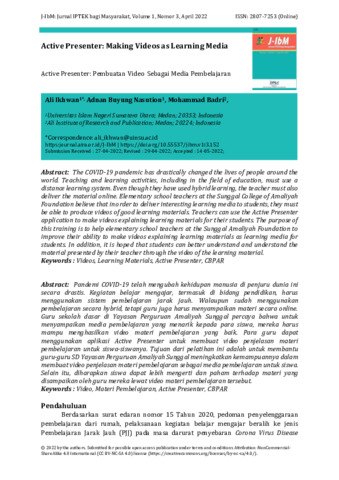 | Uncontrolled Keywords: | Video, Materi pembelajaran, Active presenter, CBPAR, Videos, Learning Materials, Covid-19 |