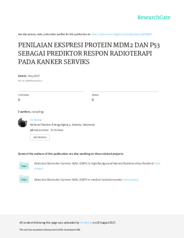 Iin, Kurnia (2016) PENILAIAN EKSPRESI PROTEIN MDM2 DAN P53 SEBAGAI PREDIKTOR RESPON RADIOTERAPI PADA KANKER SERVIKS. BIOMA, 12 (1). pp. 1-13. ISSN 0126-3552