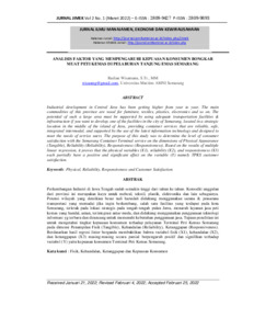 Perkembangan Industri di Jawa Tengah sudah semakin tinggi dari tahun ke tahun. Komoditi unggulan dari provinsi ini merupakan kayu untuk mebeul, tekstil, plastik, elektronika dan lain sebagainya. Potensi wilayah yang demikian besar tadi haruslah didukung menggunakan sarana & prasarana transportasi yang memadai jika ingin berkembang, salah satu fasilitas yang terdapat pada kota Semarang, terletak pada lokasi strategis pada tengah-tengah pulau Jawa, menaruh layanan jasa peti kemas yang handal, aman, terintegrasi antar moda, dan didukung menggunakan penggunaan teknologi informasi yg terbaru dan dirancang untuk memenuhi kebutuhan penggunaan jasa. Tujuan penelitian ini untuk mengetahui tingkat kepuasan konsumen terhadap pelayanan Terminal Peti Kemas Semarang pada dimensi Penampilan Fisik (Tangible), Kehandalan (Reliability), Ketanggapan (Responsiveness). Berdasarkan hasil regresi linier berganda membuktikan bahwa variabel fisik (X1), kehandalan (X2), dan ketanggapan (X3) masing-masing secara parsial berpengaruh positif dan signifikan terhadap variabel (Y) yaitu kepuasan konsumen Terminal Peti Kemas Semarang.