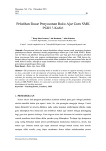 Penyususnan buku ajar sangat diperlukan sebagai sarana untuk menunjang kegiatan pembelajaran dikelas, khususnya dalam pengembangan bahan ajar. Pada SMK PGRI 3 Kediri saat ini belum ada pelatihan tentang penyusunan buku ajar bagi guru baik kegiatan pelatihan dasar penyusunan buku ajar maupun pendampingan penentuan bahan ajar. Oleh karena itu, dengan adanya kegiatan pengabdian masyarakat dalam pelatihan dasar penyusunan buku ajar di SMK PGRI 3 Kediri, diharapkan dapat memberikan manfaat untuk meningkatkan keterampilan guru dalam pengembangan bahan ajar.