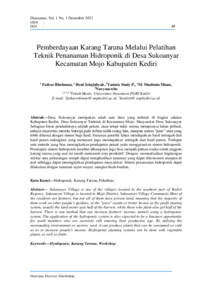 Fatkur, Rhohman and Hesti, Istiqlaliyah and Yasinta, Sindy P. and M., Muslimin Ilham and Nuryosuwito, Nuryosuwito (2021) Pemberdayaan karang taruna melalui pelatihan teknik penanaman hidroponik di Desa Sukoanyar Kecamatan Mojo Kabupaten Kediri. Jurnal Pengabdian Masyarakat Nusantara, 1 (1): 6. pp. 35-40. ISSN 2828-5646