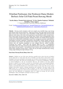 Kartika, Rahayu and Elsanda Merita, Indrawati and M., Dewi Manikta Puspitasari and Miftakhul, Maulidina and Fanny, Anggoro (2021) Pelatihan pembuatan alat pembasmi hama modern berbasis solar cell pada petani bawang merah. Jurnal Pengabdian Masyarakat Nusantara, 1 (1): 7. pp. 41-47. ISSN 2828-5646