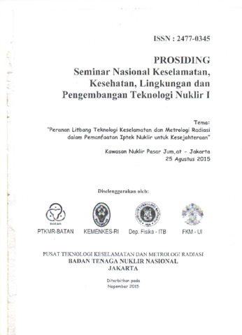 | Subjects: | Taksonomi BATAN > Keselamatan dan Keamanan Nuklir > Keselamatan Radiasi dan Kesehatan kerja > Dosimetri Radiasi Taksonomi BATAN > Keselamatan dan Keamanan Nuklir > Keselamatan Radiasi dan Kesehatan kerja > Dosimetri Radiasi |
