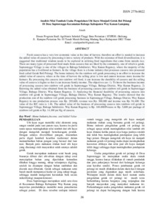 Aisah, Aisah (2022) Analisis nilai tambah usaha pengolahan ubi kayu menjadi Getuk Rol Pelangi di Desa Saptorenggo Kecamatan Bahuga Kabupaten Way Kanan Lampung. Jurnal Bakti Agribisnis, 8 (1): 4. pp. 26-31. ISSN 2776-0022