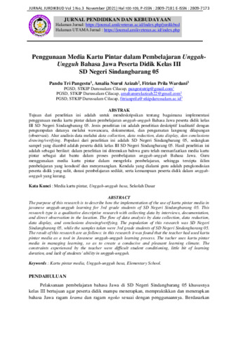 Pandu, Tri Pangestu and Amalia, Nurul Azizah and Fitrian, Prila Wardani (2021) Penggunaan media kartu pintar dalam pembelajaran unggah-ungguh bahasa Jawa peserta didik kelas III SD Negeri Sindangbarang 05. Jurnal Pendidikan dan Kebudayaan, 1 (3). ISSN 2809-7181