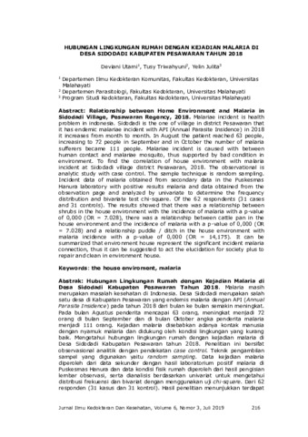 Deviani, Utami and Tusy, Triwahyuni and Yelin, Julita (2019) Hubungan lingkungan rumah dengan kejadian Malaria di desa Sidodadi kabupaten Pesawaran tahun 2018. Jurnal Ilmu Kedokteran dan Kesehatan, 6 (3). pp. 216-223. ISSN 2549-4864