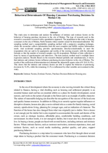 | Uncontrolled Keywords: | Intrinsic Factors, Extrinsic Factors, Purchase Decision Behavior Housing area |