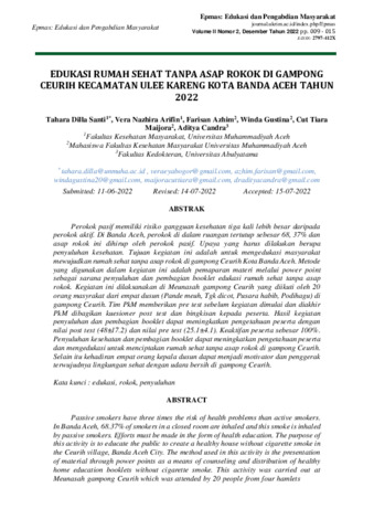 Edukasi rumah sehat tanpa asap roko di gampong ceurih kecamatan ulee kareng Kota Banda Aceh Tahun 2022.pdf - Published Version