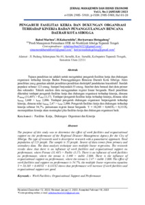 | Uncontrolled Keywords: | Fasilitas Kerja, Dukungan Organisasi dan Kinerja |