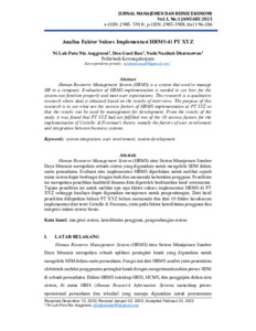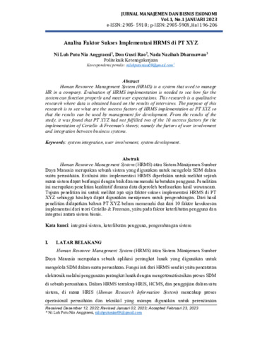 Ni Luh, Putu Nia Anggraeni and Don, Gusti Rao and Nada, Nazihah Dharmawan (2023) Analisa faktor sukses implementasi HRMS di PT XYZ. Jurnal Manajemen dan Bisnis Ekonomi, 1 (1). pp. 196-206. ISSN 2985-590X