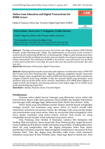 | Uncontrolled Keywords: | Edukasi, Pinjaman online, Transaksi digital, Service learning, Small business, Loans |