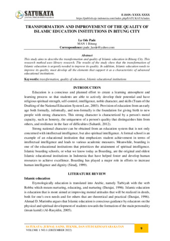 La, Ode Pade (2022) Transformation and improvement of the quality of Islamic education institutions in Bitung City. Satukata: Jurnal Sains, Teknik, dan Studi Kemasyarakatan, 1 (1): 2. pp. 9-16. ISSN 2963-9824