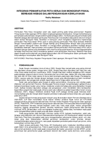Redhy, Matabean (2022) Integrasi pemanfaatan peta kerja dan monografi fiskal berbasis WebGIS dalam pengawasan kewilayahan. Jurnal Survei dan Penilaian, 28 (-): 3. pp. 29-41. ISSN 2654-542X