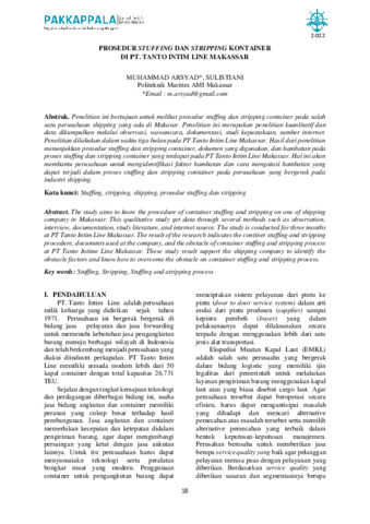 Muhammad, Arsyad and Sulistiani, Sulistiani (2022) Prosedur stuffing dan stripping kontainer di PT. Tanto Intim Line Makassar. 2962-0627, 1 (1): 4. pp. 18-23. ISSN Pakkappala: Jurnal Ilmiah Kemaritiman