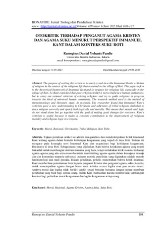 Tujuan penulisan artikel ini adalah menganalisis dan mendeskripsikan Kritik Imannuel Kant tentang agama dalam konteks kehidupan keagamaan yang terjadi di desa Boti. Tulisan ini mengacu pada kerangka teori Imannuel Kant dan urgensinya bagi kehidupan keagamaan, khususnya di desa Boti. Sebagaimana yang dijelaskan Kant bahwa keyakinan agama yang murni bukanlah untuk membangun institusi manusia yang baru, tetapi melakukan kritik rasional terhadap agama-agama yang ada serta mencoba untuk membimbing agama-agama dalam kemajuan menuju cita-cita komunitas manusia universal. Adapun metode penelitian yang digunakan adalah metode fenomenologi dan studi pustaka. Dalam penelitian, peneliti menemukan bahwa kritik Imannuel Kant memberikan pemahaman baru kepada penganut Kristen dan penganut agama suku (halaika) untuk menempatkan agama dengan benar serta terbuka secara logika mau pun secara moral.Artinya moral dan logika tidak berdiri sendiri tetapi berjalan bersama dengan tujuan membuat perubahan yang baik bagi semua orang. Kritik Kant bermanfaat karena memberikan sumbangsih konstan bagi perbaikan moral keagamaan dan logika keagamaan setiap orang.