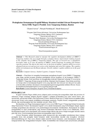 Chaerul, Anwar and Fitriyah, Nurhidayah and Hendi, Hermawan (2023) Peningkatan kemampuan kognitif bidang akuntansi melalui literasi komputer bagi siswa SMK Negeri 2 Pondok Aren Tangerang Selatan, Banten. Community of Urban Development, 1 (1): 4. pp. 27-30. ISSN 2986-8173