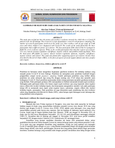 Alya, Inas Yuliana and Wahyuni, Kristinawati (2022) Gambaran resiliensi ibu dari anak pasien Covid-19 di Kota Salatiga. Inovasi: Jurnal Sosial Humaniora Dan Pendidikan, 1 (1): 1. pp. 1-9. ISSN 2809-0403