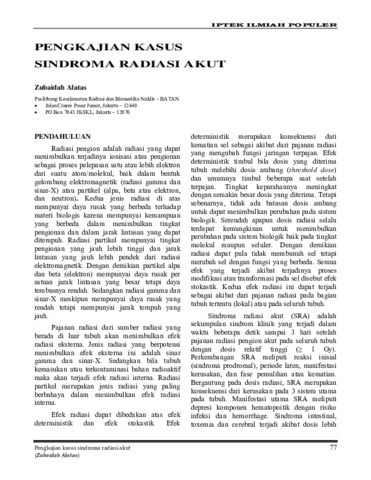 Zubaidah, Alatas (2004) PENGKAJIAN KASUS SINDROMA RADIASI AKUT. Bulletin ALARA, 6 (2). pp. 77-84. ISSN 1410-4652