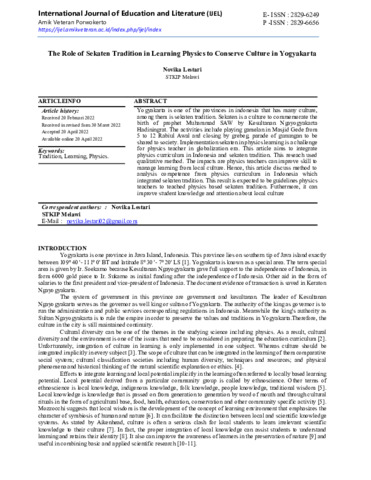Novika, Lestari (2022) The role of sekaten tradition in learning physics to conserve culture in Yogyakarta. International Journal of Education and Literature, 1 (1): 9. pp. 90-95. ISSN 2829-6656