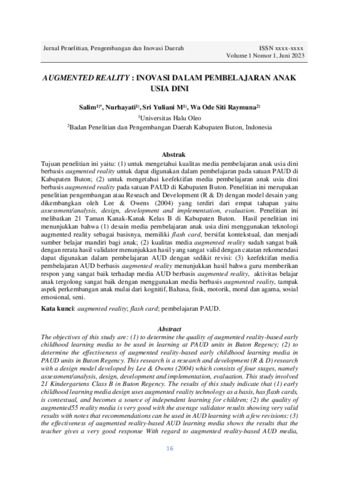Salim, Salim and Nurhayati, Nurhayati and Sri, Yuliani M and Wa, Ode Siti Raymuna (2023) Augmented reality: Inovasi dalam pembelajaran anak usia dini. Jurnal Penelitian, Pengembangan dan Inovasi Daerah, 1 (1): 2. pp. 16-29. ISSN 2988-4233