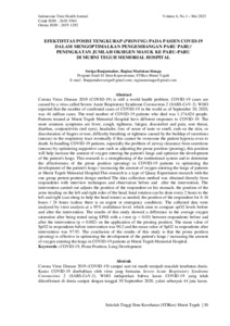 Seriga, Banjarnahor and Regina, Marintan Sinaga (2023) Efektifitas posisi tengkurap (proning) pada pasien COVID-19 dalam mengoptimalkan pengembangan paru-paru/peningkatan jumlah oksigen masuk ke paru-paru di Murni Teguh Memorial hospital. Indonesian Trust Health Journal, 6 (1): 8. pp. 50-56. ISSN 2620-5564