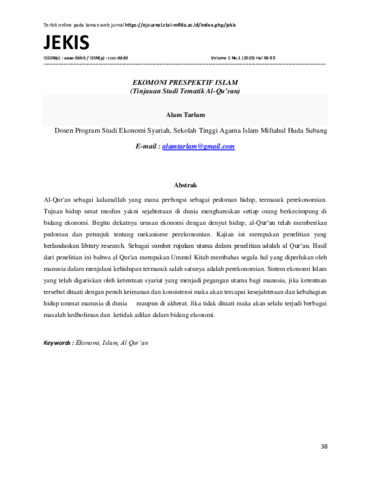 | Uncontrolled Keywords: | Ekonomi, Islam, Al Qur’an |