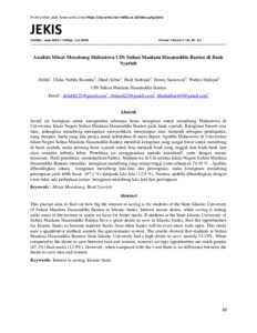 | Uncontrolled Keywords: | Minat Menabung, Bank Syariah |