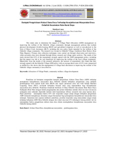 | Uncontrolled Keywords: | Alokasi Dana Desa, kesejahteraan masyarakat, pembangunan desa |