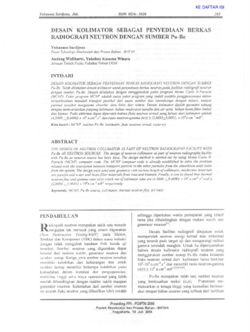 Kata kunci : MCN p, sumber Pu-Be, kolimator, jluks neutron termal, rasio nly