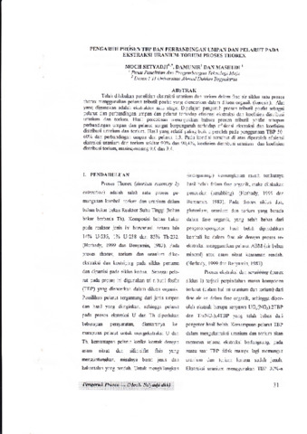 Telah dilakukan penelitian ekstraksi uranium dan torium dalam fase air siklus satu proses
