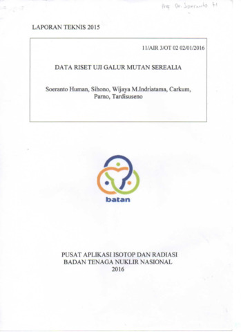Human, Soeranto and Sihono, Sihono and Indriatama, Wijaya M. and Carkum, Carkum and Parno, Parno and Tardisuseno, Tardisuseno (2016) Laporan Teknis 2015: Data Riset Uji Mutan Serelia. Technical Report. PAIR - BATAN.