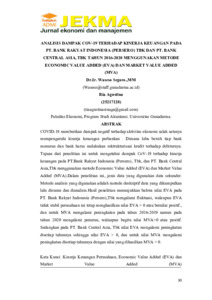 Ria, Agustina (2022) Analisis dampak cov-19 terhadap kinerja keuangan pada PT. Bank rakyat indonesia (persero) TBK dan PT. Bank Central Asia, TBK tahun 2016-2020 menggunakan metode Economic Value Added (EVA) dan Market Value Added (MVA). Jurnal Ekonomi dan Manajemen, 1 (1). pp. 30-37. ISSN 2828-6928