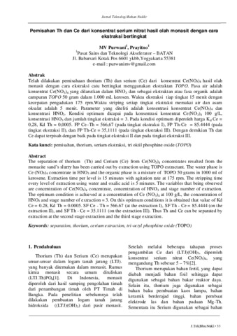 Kata kunci:pemisahan, thorium, serium ekstraksi, tri oktil phosphine oxide (TOPO)