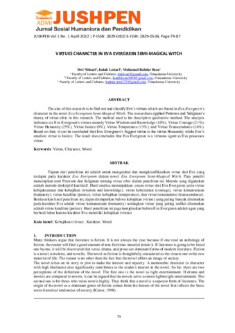 Dwi, Nitisari and Indah, Lestari and Muhamad, Bahtiar Rezac (2022) Virtues character in Eva Evergreen Semi-Magical Witch. Jurnal Sosial Humaniora dan Pendidikan, 1 (1). pp. 79-87. ISSN 2829-0410